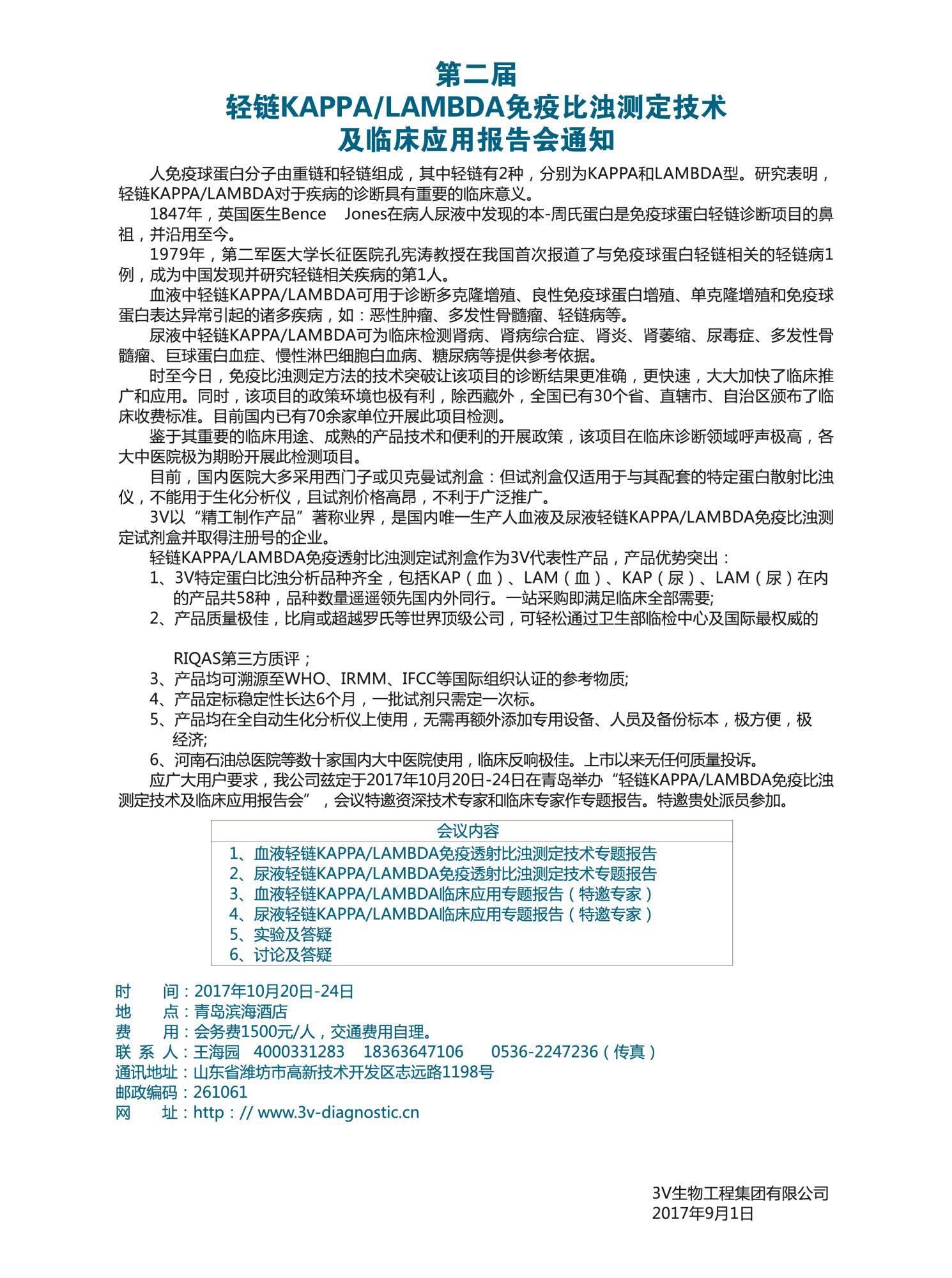 第二屆輕鏈KAPPA/LAMBDA免疫比濁測定技術(shù)及臨床應用報告會(huì )通知(2017.10.20-10.24) 2017-09-11? 3V生物工程集團有限公司官網(wǎng) 上一篇:第四屆特定蛋白免疫比濁檢測技術(shù)專(zhuān)題報告會(huì )通知(2018.4.13-4.19) 下一篇:第十八屆中國RIA技術(shù)論壇通知(2018.4.13-4.19)